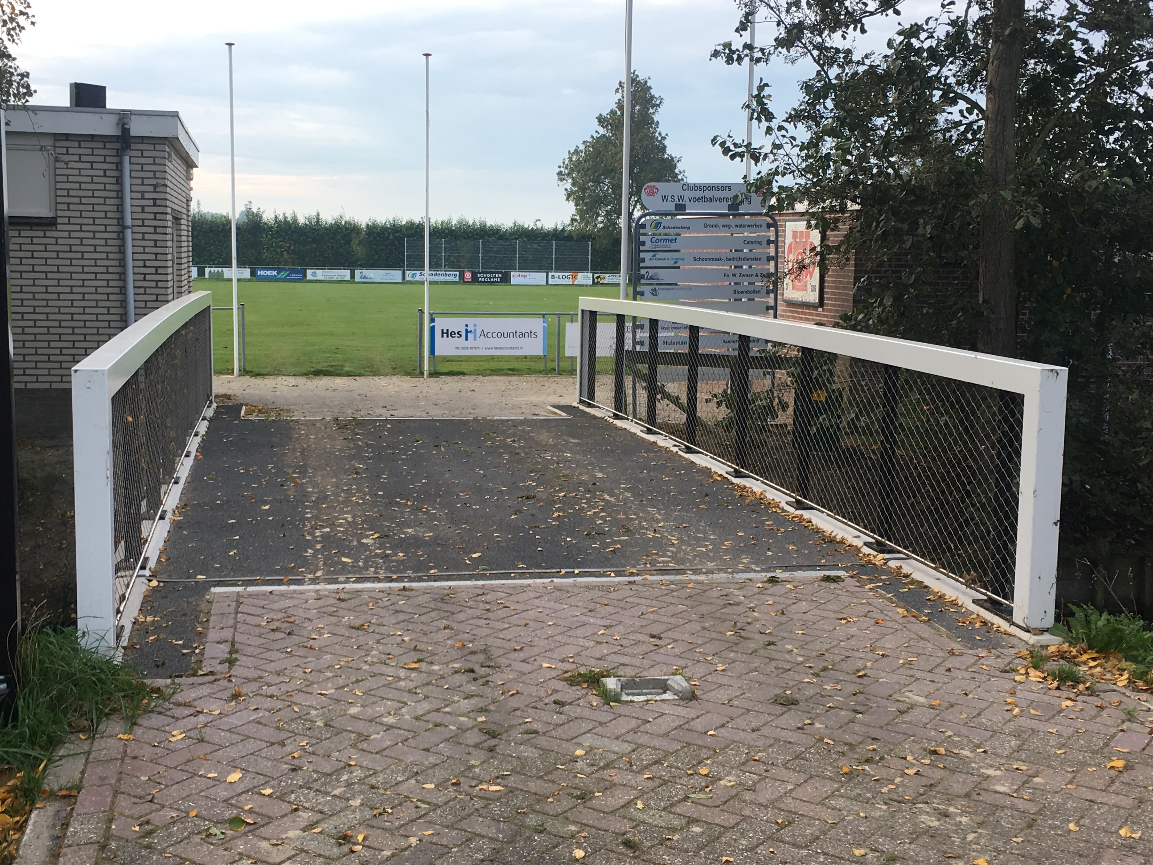 Bij de renovatie van het brugdek van voetbalvereniging WSW te Wijdenes heeft de architect een voetbaldoeltje als uitgangspunt genomen voor het ontwerp van de gepoedercoate leuningen op de brug. De leuningen zijn geplaatst op de nieuwe Omicronbrug van 6.00 m lang en 4.03 m breed.
