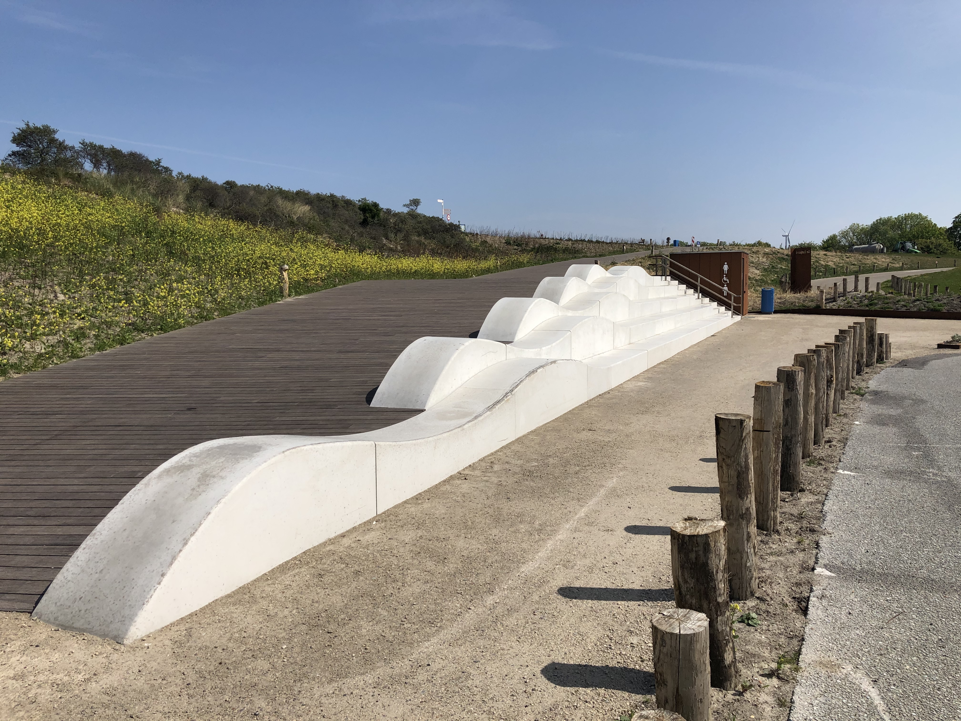In het ontwerp van de looproute van de parkeerplaats naar het strand is onder andere een grote trappartij en een aantal zitelementen opgenomen. Giverbo mocht hiervoor de leverantie verzorgen.