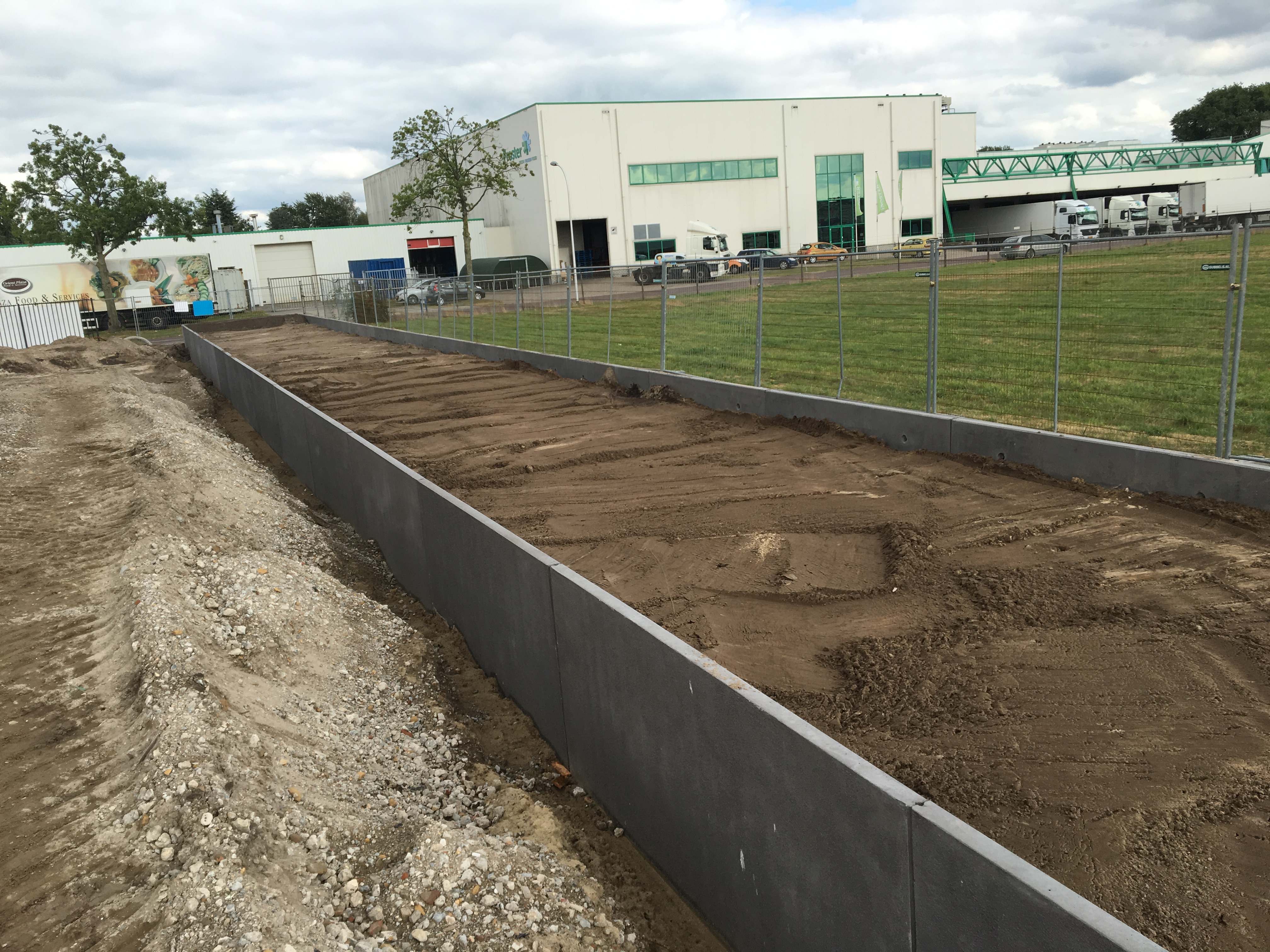 De inrichting van nieuwe parkeerplaatsen moet de bezoekers een extra stimulans geven om deze woonboulevard te bezoeken. Als afscheiding van het naastgelegen bedrijf is er gekozen om een plantenbak aan te leggen door middel van ca. 400 m’ antracietkleurige enkelkerende keerwanden met een hoogte van 1.25 m.