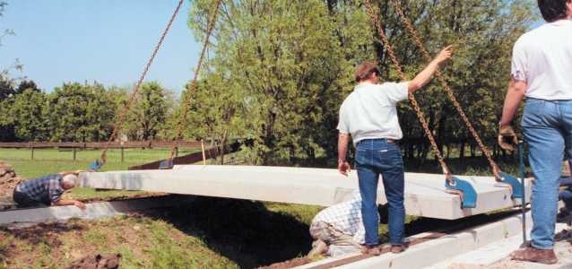 Als oplegmateriaal wordt staalvilt in stroken van 100 mm breedte meegeleverd. Dit dient vóór de montage van de brugelementen op de fundatie te worden gelegd, zodanig dat de brug midden op de fundatie komt te liggen.
