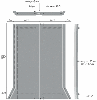 Elk brugelement wordt standaard voorzien van één doorvoering Ø 70 mm voor kabelvoorziening.