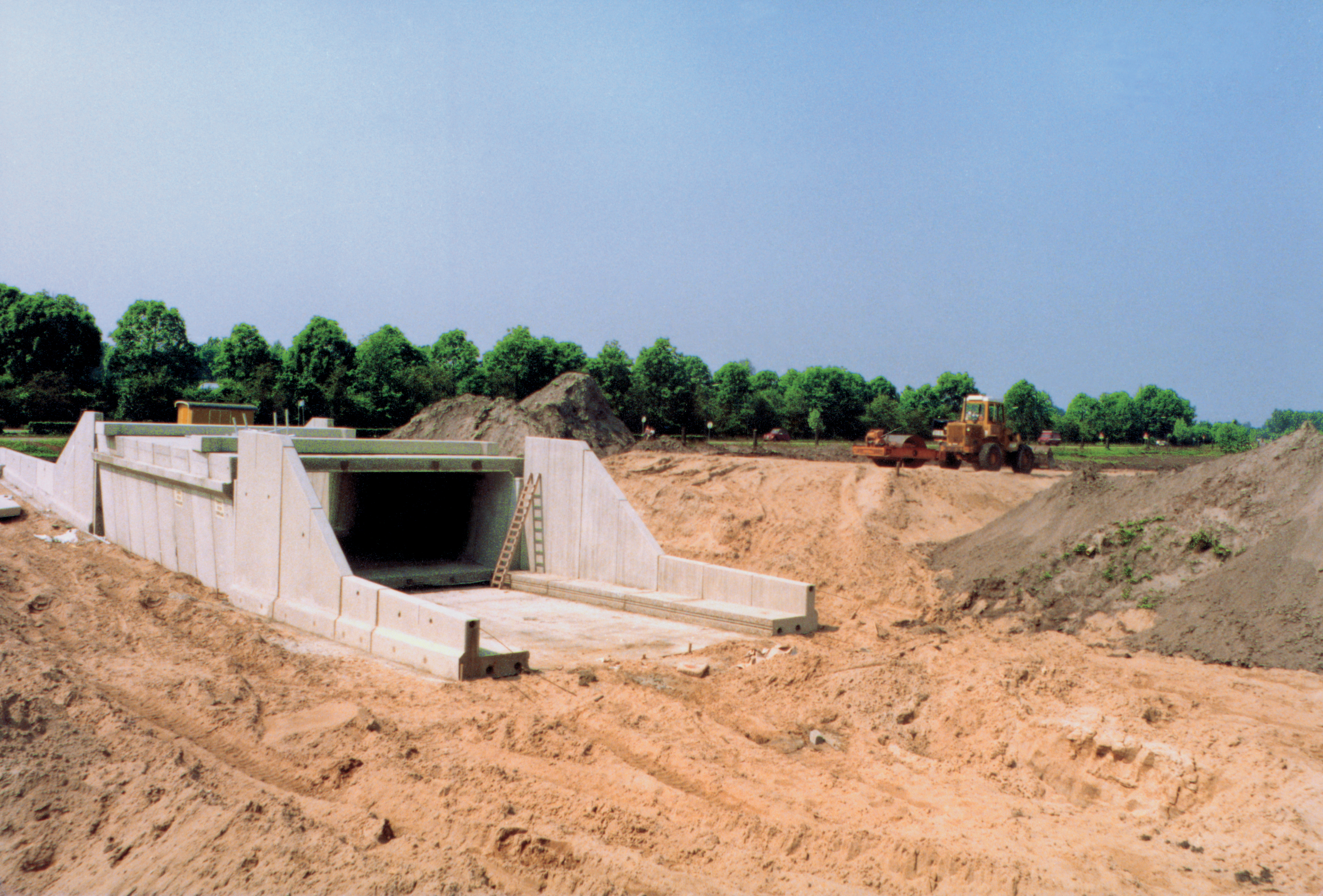 Door de grote ervaring van Giverbo op het gebied van nagespannen duikerelementen werden tunnels in geprefabriceerd beton reeds in het begin van de zeventiger jaren door ons uitgevoerd. Deze eerste prefab tunnels werden toegepast voor voetgangers en/of fietsers of als veetunnels. In de meeste gevallen werden ze aangelegd in een weg in ophoging, waardoor de beëindigingen eenvoudig waren uit te voeren. De waterdichtheid van de voegen was hierbij gemakkelijk te realiseren.