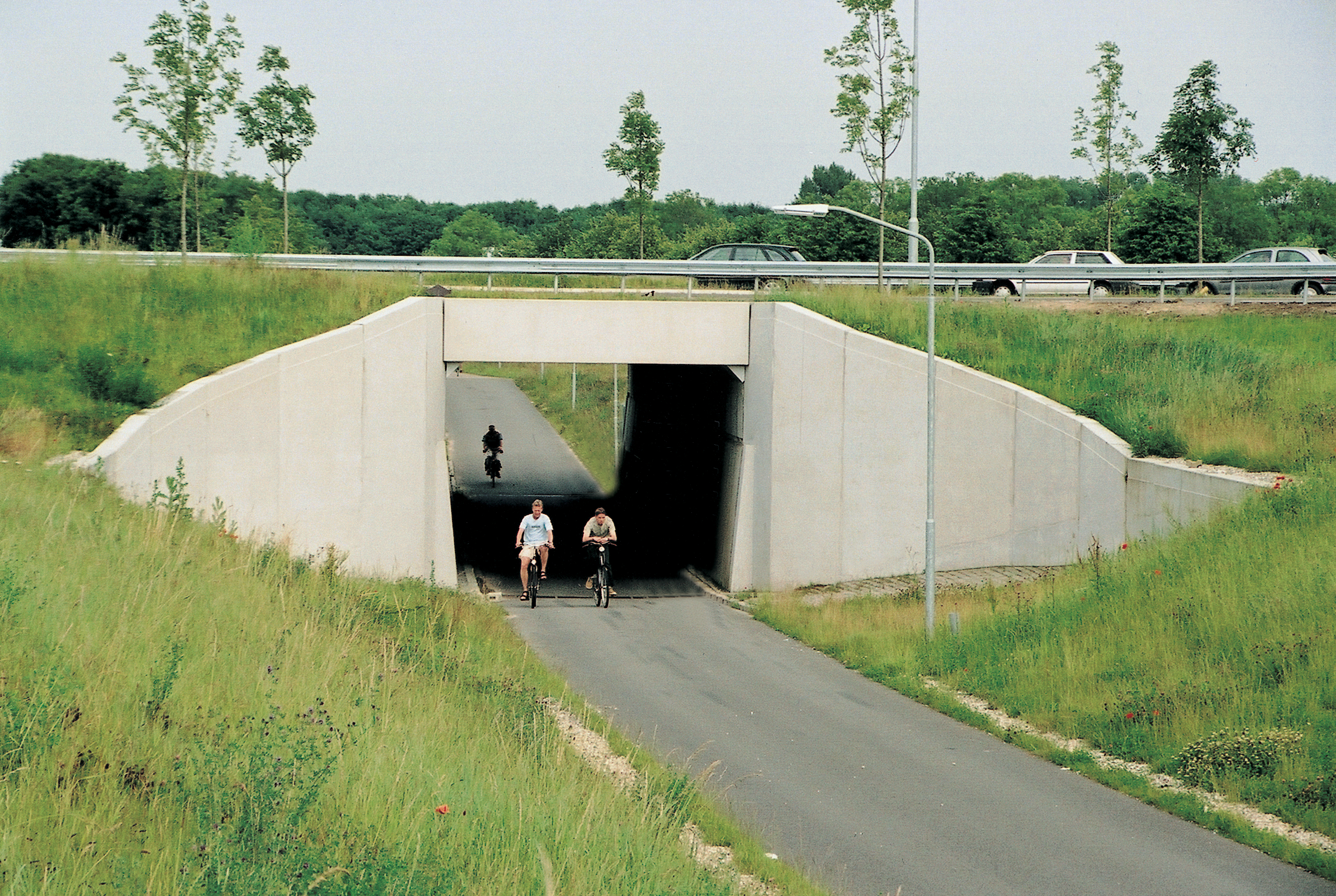 Tunnel onder de rondweg uitgevoerd met prefab opritten.