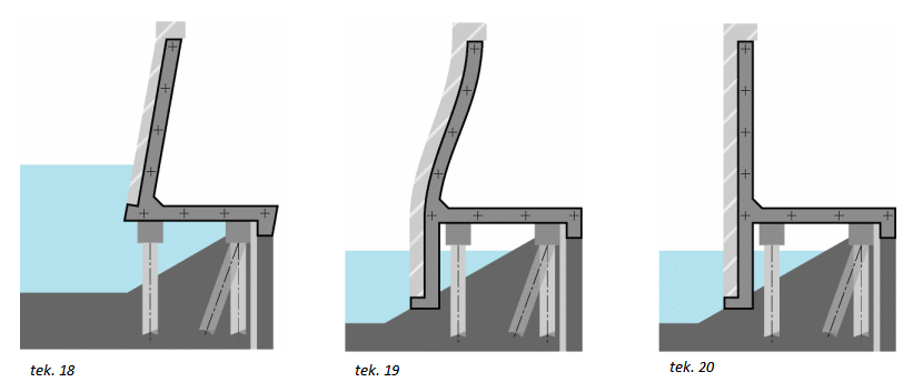 Voor een juiste keuze zijn de gegevens van de ondergrond, door middel van sonderingen en/of boringen onmisbaar. Voor een fundering op staal adviseren wij een betonnen stelvloer, direct op de ongeroerde grondslag of op een goed verdichte grondverbetering (zie blad 6). Een onderheide constructie wordt vaak toegepast bij een keerwand langs een waterpartij, waarbij de keerwand wordt uitgevoerd met een verlaagde voorzijde.