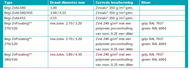 De elementen zijn beschikbaar met Zincalu legering of met een poedercoating bewerking. Dit garandeert een lange en onderhoudsvrije levensduur.